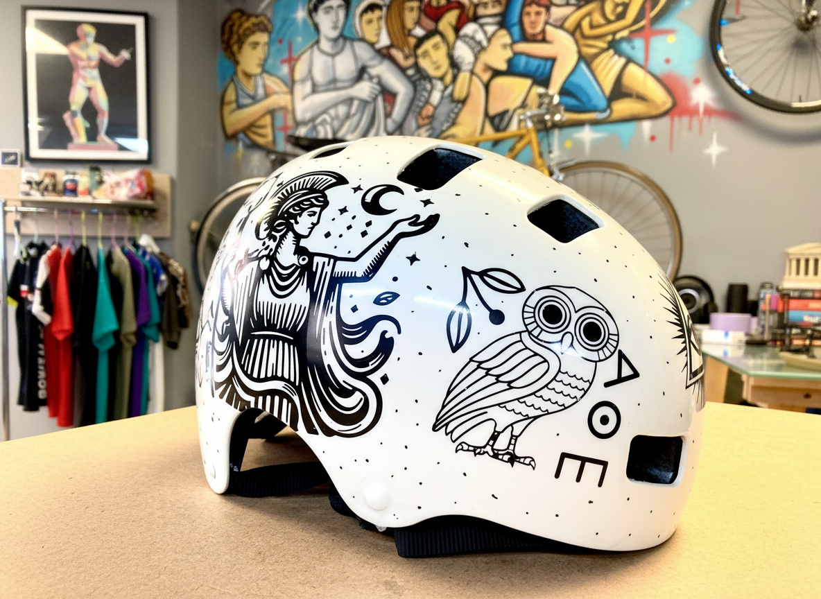 Η προστασία συναντά την τέχνη. Στην Athens Custom Bicycles, δεν περιοριζόμαστε μόνο στους σκελετούς ποδηλάτων. Εξειδικευόμαστε στις custom βαφές κρανών (moto, bike, downhill), μετατρέποντας ένα απλό αξεσουάρ σε μοναδικό κομμάτι που εκφράζει το προσωπικό σας στυλ.